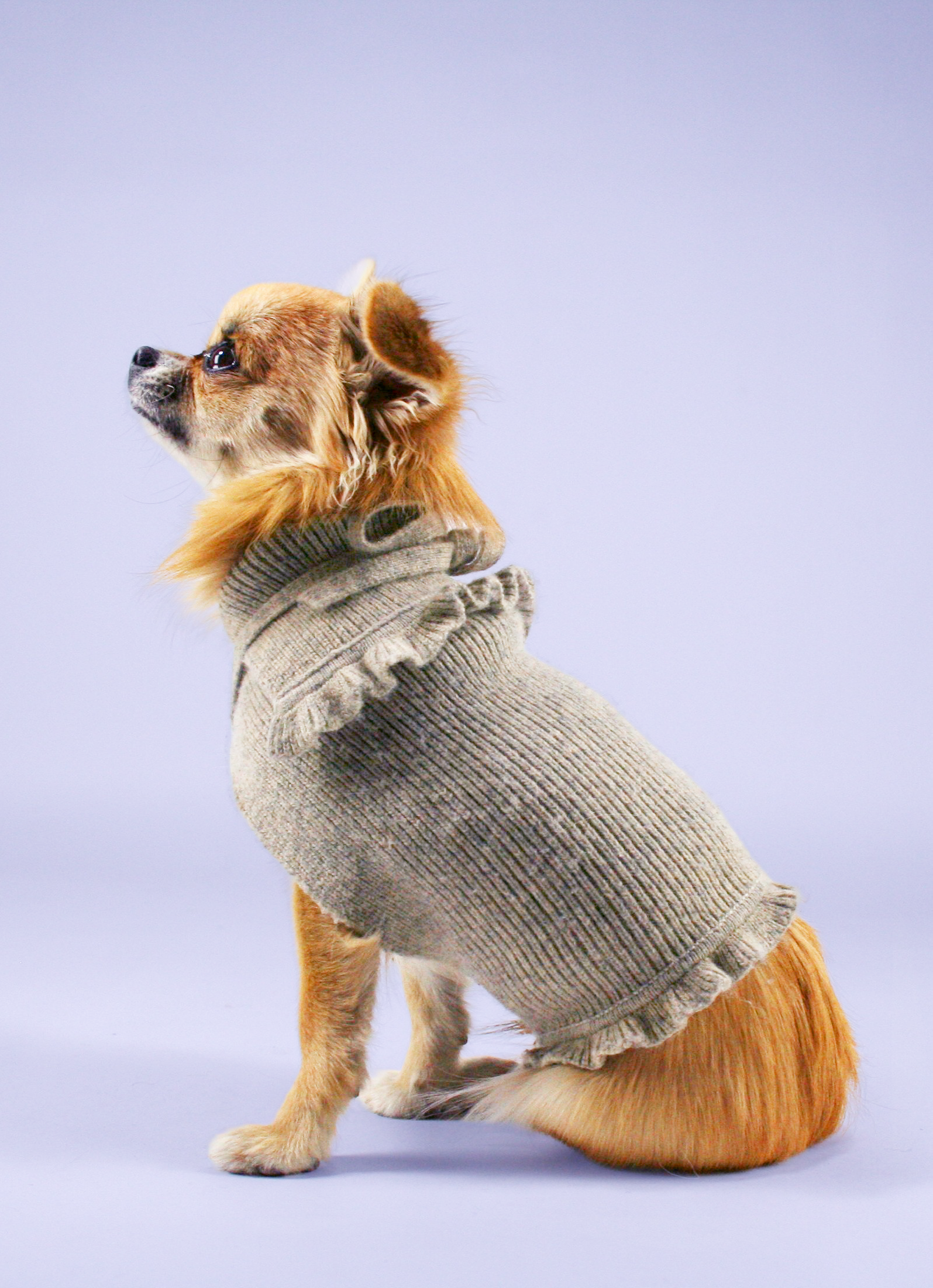 This sweater is a masterpiece of modern craftsmanship, expertly knit by a true knitting master virtuoso. Each stitch is precise and perfect, a testament to the skill and dedication behind its creation. Made from 100% wool, it offers the ideal balance of warmth and breathability, wrapping your pup in cozy comfort. The intricate design, from the delicate ruffled collar to the elegantly detailed hem, showcases the knitting master's ability to blend function with fashion effortlessly. It’s not just a sweater; it’s a work of art, designed to keep your furry friend warm while making a stylish statement. Whether your pup is out for a brisk walk or lounging in your arms, this sweater is a celebration of quality, care, and impeccable craftsmanship!